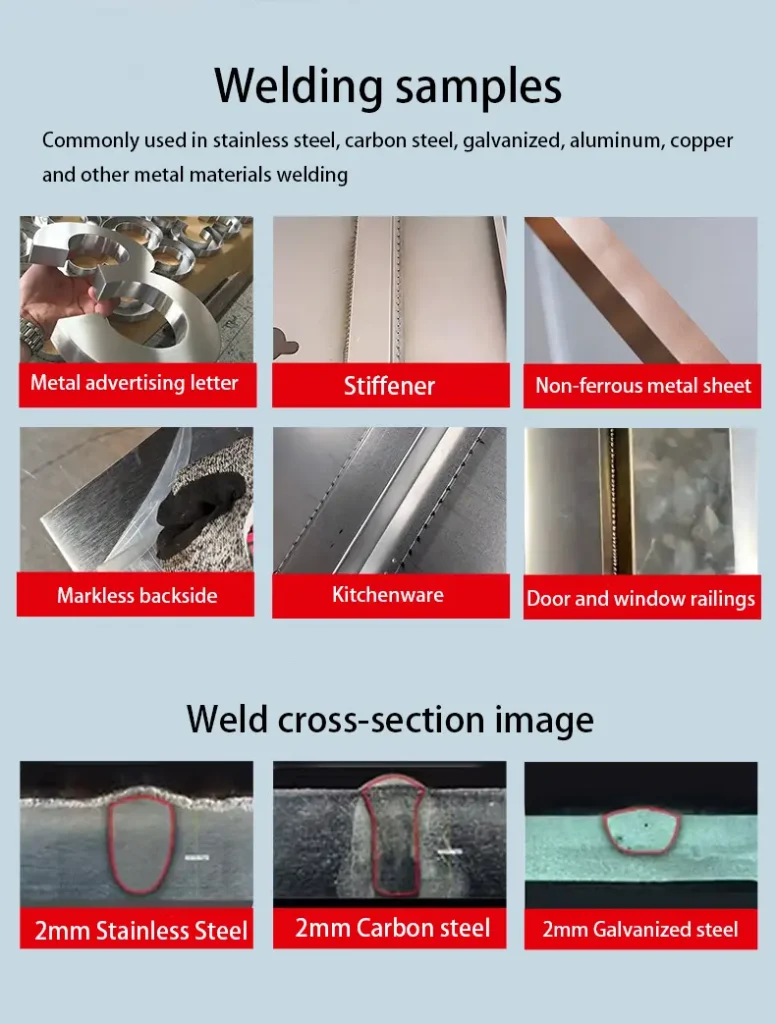| Welding material | carbon steel,stainless steel,galvanized sheet steel,aluminum,Titanium,Iron |
